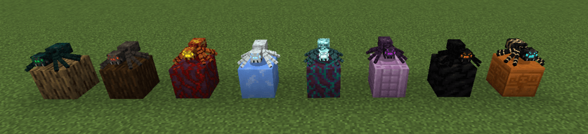 Кроме того, этот мод добавляет три новых редстоун-блока: Паутинная железа (Spinneret), Паучья ловушка (Spider Trap) и Ловушка для чешуйниц (Silverfish Trap). Паутинная железа покрывает блоки над собой временными Паутинными ловушками при активации, а Ловушка для чешуйниц разрушается, выпуская от 5 до 8 Атакующих чешуйниц (Attack Silverfish), которые будут преследовать всё, что воспринимают как угрозу, включая вас. Паучья ловушка действует аналогично, но выпускает только от 3 до 5 более мощных Атакующих пауков (Attack Spiders), которые оставляют после себя Паутинные ловушки после смерти.