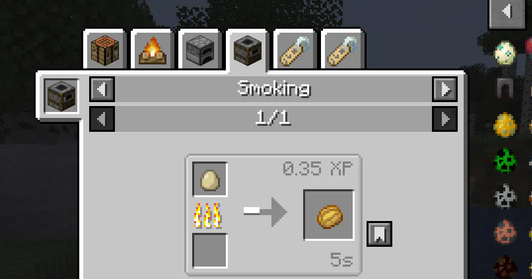 Рецепты автоматически адаптируются. Здесь, железные слитки → яйца в рецепте печи:
