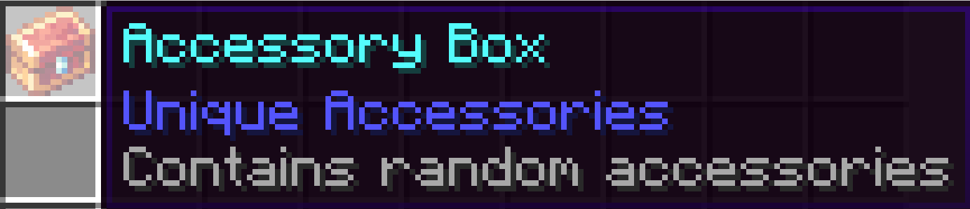 Коробка с аксессуарами — это предмет, который при использовании позволяет получить один аксессуар со следующей вероятностью.