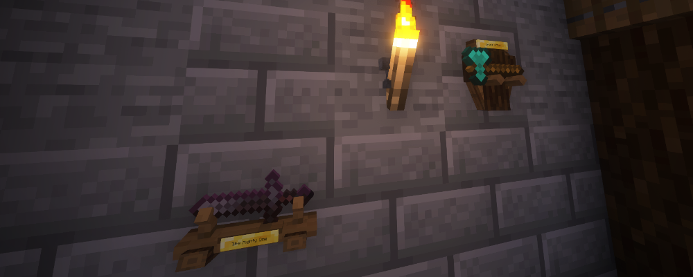 - Wall Holders с Plaques для отображения крутого имени, которое вы дали своему предмету (и также скучных имен, таких как GOD SWORD или что-то в этом роде...)