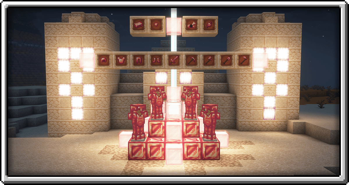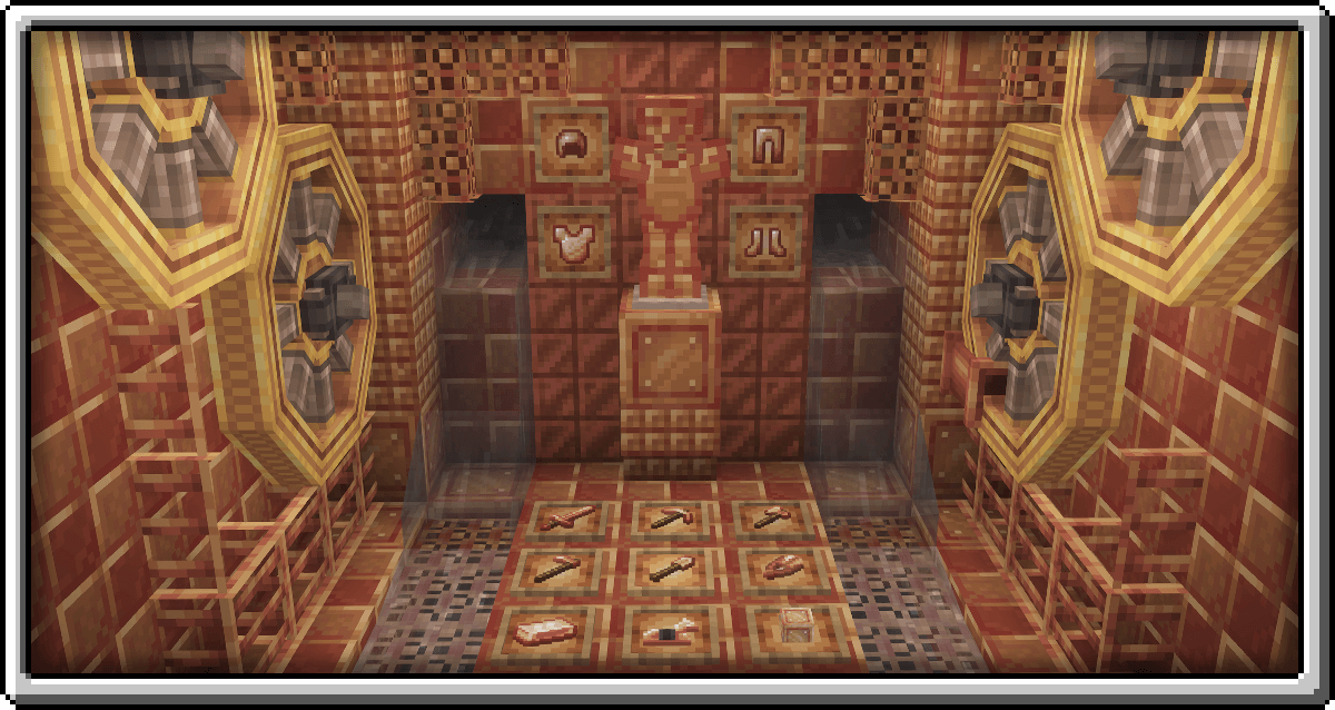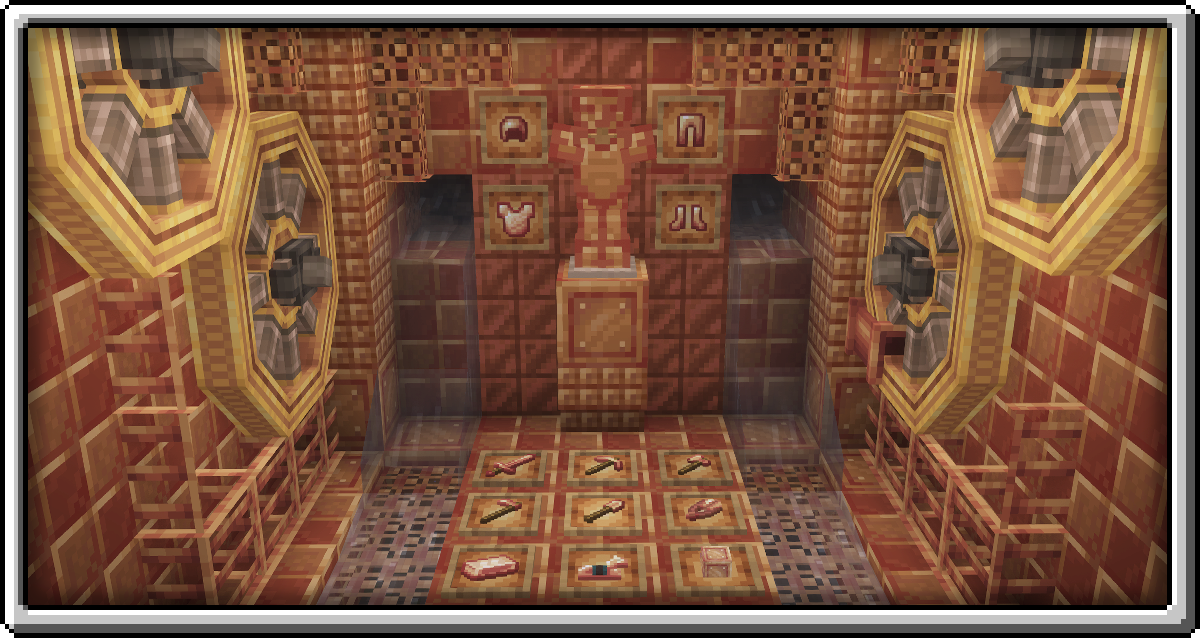 🔨Бронза: Этот прочный сплав можно создать, объединив 4 единицы Олова и 4 единицы Меди на верстаке. Бронзу можно использовать для изготовления Бронзовой экипировки и инструментов. Эти предметы находятся на уровне между железом и алмазом. Бронзовые инструменты немного прочнее железных и имеют более высокую прочность. Подобно реальным аналогам, бронзовые предметы обладают высокой огнестойкостью и не сгорают, как снаряжение из Незерита. Бронзу также можно использовать для создания некоторых декоративных блоков, таких как черепица, плитка, решётки и прутья.