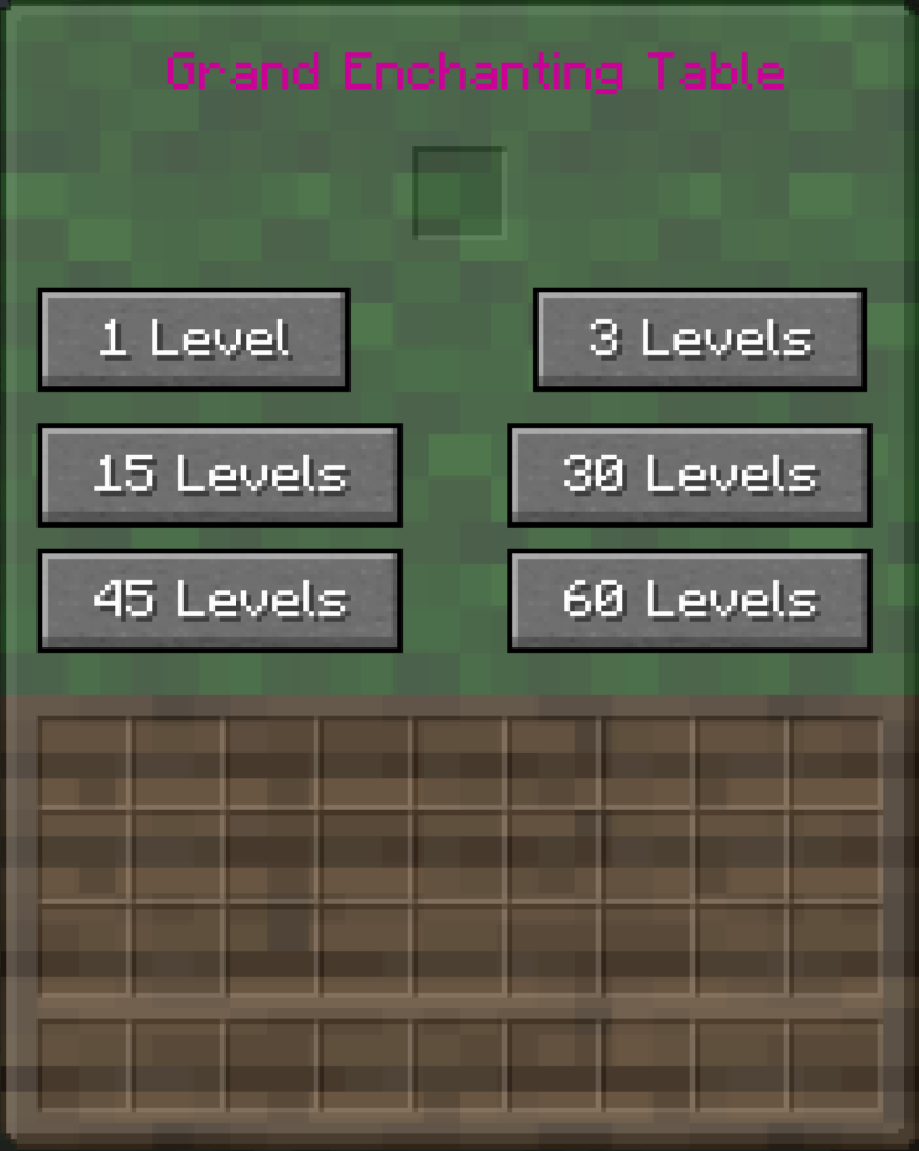 Полный интерфейс Великого стола зачарований с 60 уровнями: