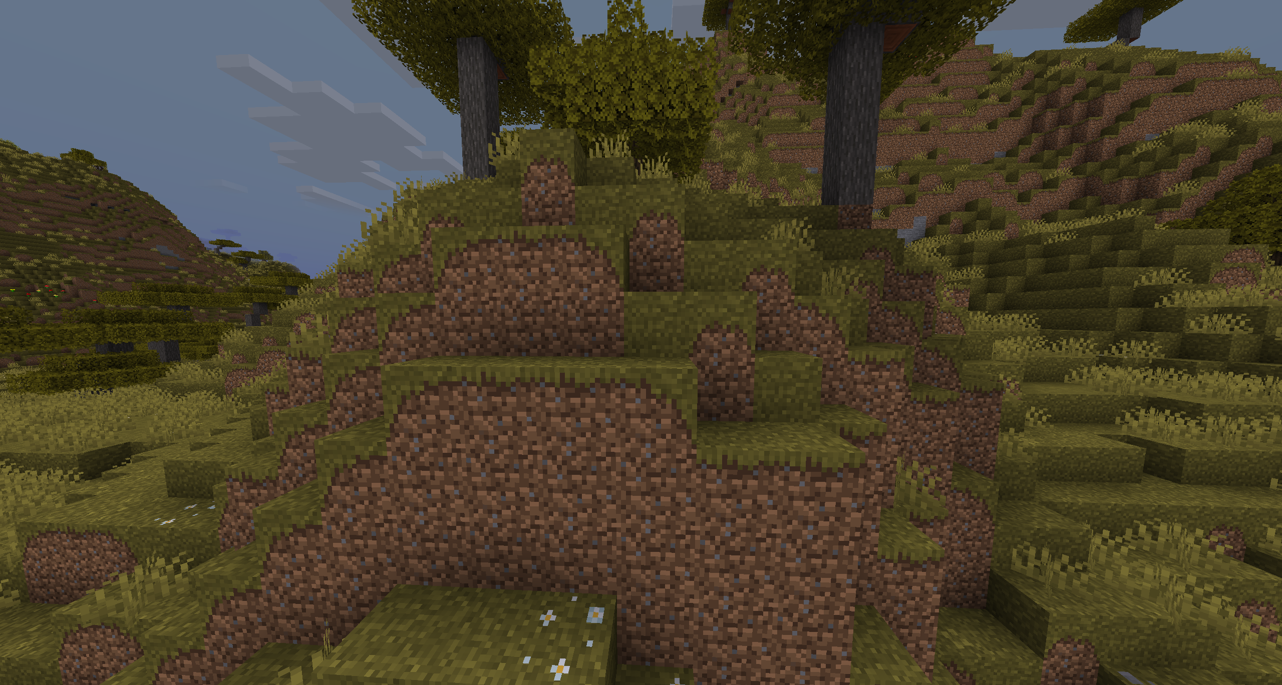- Соединение блоков (трава, мицелий, подзол, травяная тропинка, малиновый нилий, искаженный нилий)