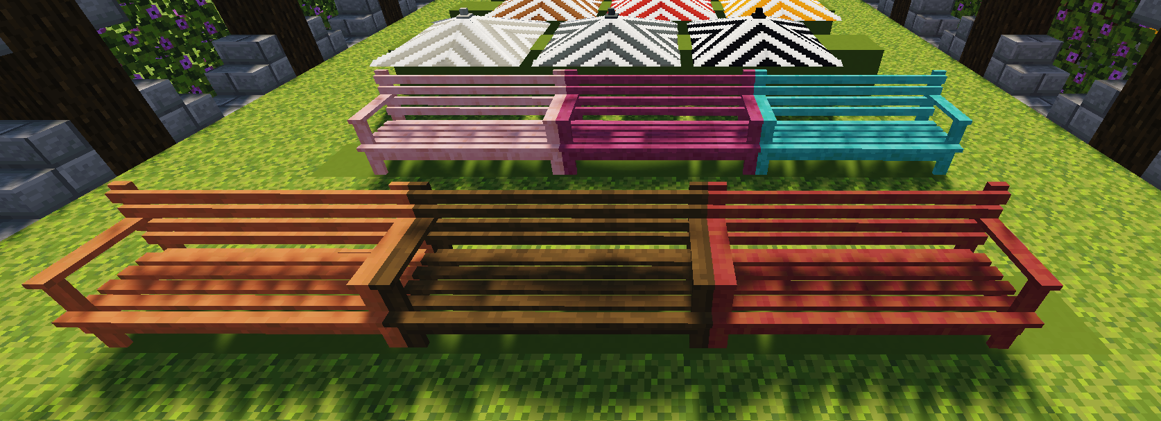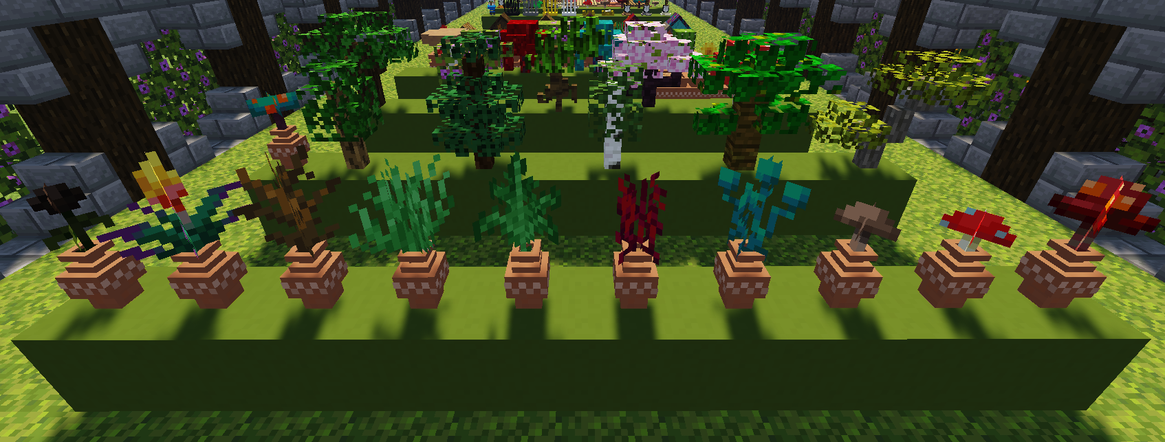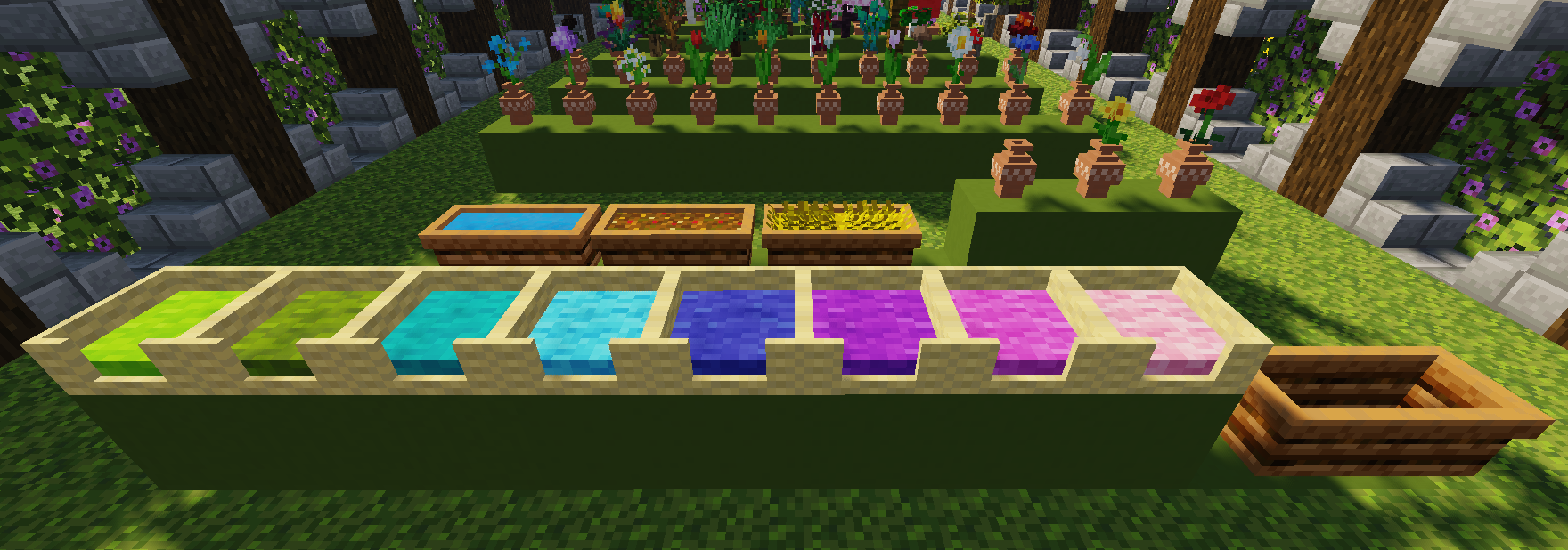 Все предметы в моде можно получить в режиме выживания. Чтобы начать создавать эти объекты, вы должны разместить зелёный краситель и изумруд на верстаке, таким образом вы получите 9 САДОВЫХ САМОЦВЕТОВ, комбинируя которые с другими материалами, вы сможете получить декоративные предметы. ВСЕГО 166 РАЗЛИЧНЫХ ПРЕДМЕТОВ!