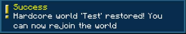 Когда вы умираете в одиночном хардкорном мире, появится новая кнопка: «Восстановить мир». В зависимости от настроек (объяснено ниже), вы сможете восстановить мир все еще в режиме Hardcore или в режиме выживания.