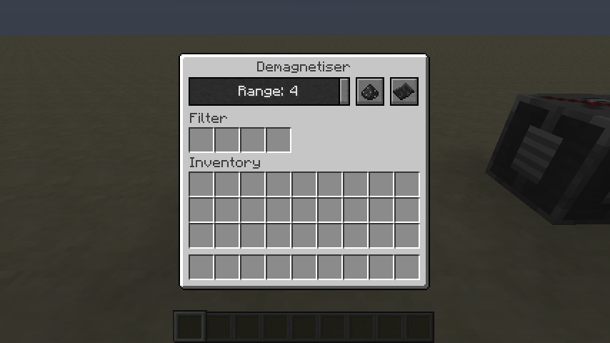 Demagnetizers также могут быть настроены с помощью фильтров или управляться редстоуном, чтобы они активировались только при необходимости. Advanced Demagnetizer имеет больший радиус действия и больше слотов для фильтров.