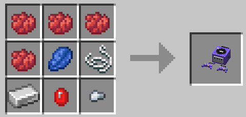 ПРИМЕР: Если вы хотите получить модель Game Cube, для ее крафта вам обязательно понадобится Electronic Gem, в дополнение к дополнительным материалам для объекта, которыми в данном случае являются железный слиток, железный самородок, нить, лазурит и 4 красных красителя. Существуют некоторые вторичные рецепты, которые получаются из комбинации предметов двух моделей. В этих случаях Gem не потребуется, так как он уже был необходим для предыдущего крафта.