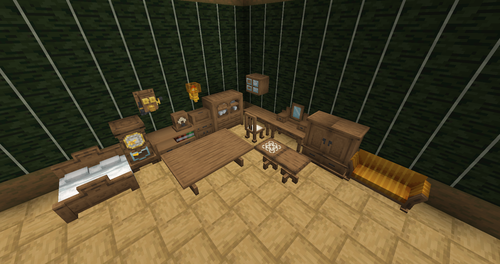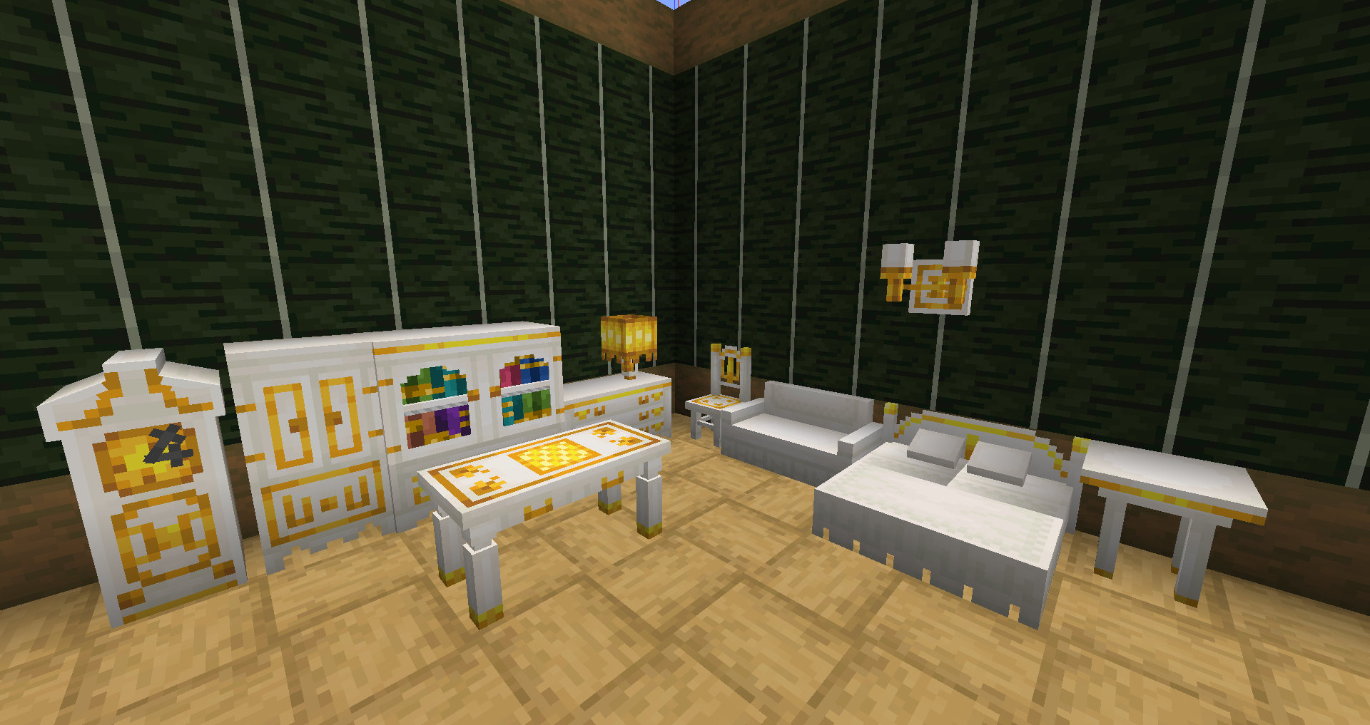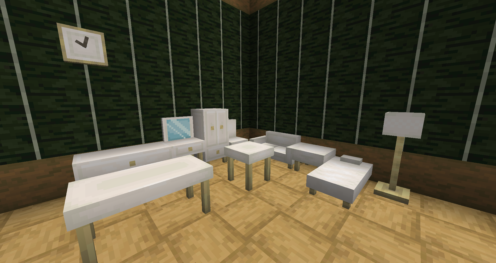 Этот мод добавляет более 200 блоков, включая часы, сиденья и кровати, а также хранилища, светильники и декорации.