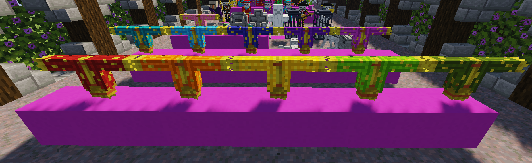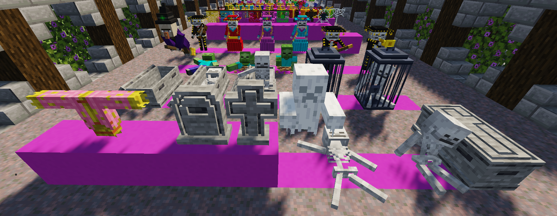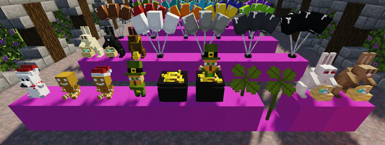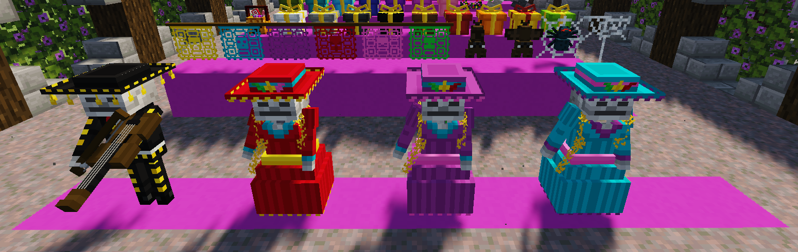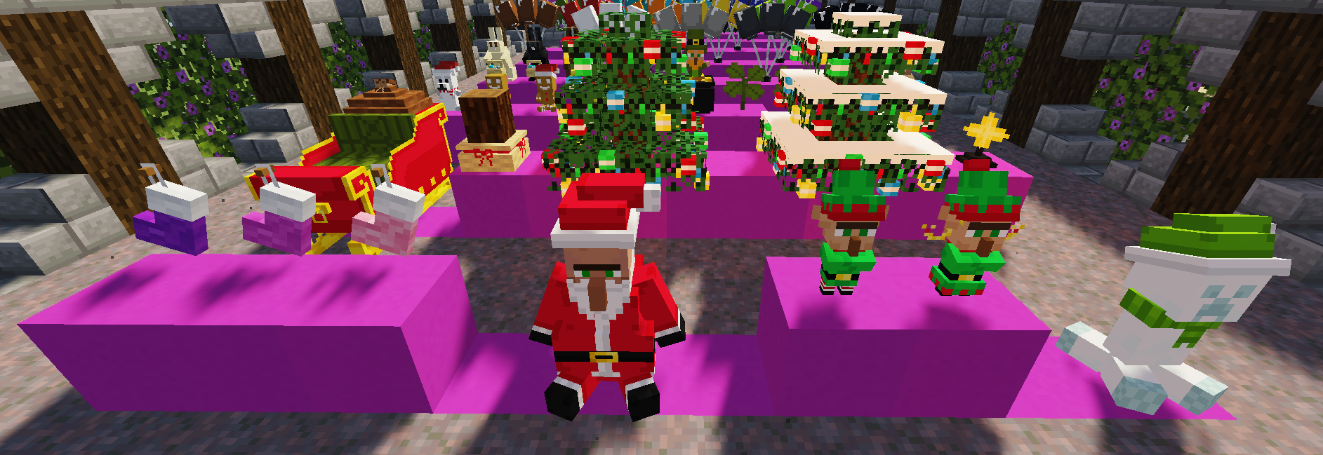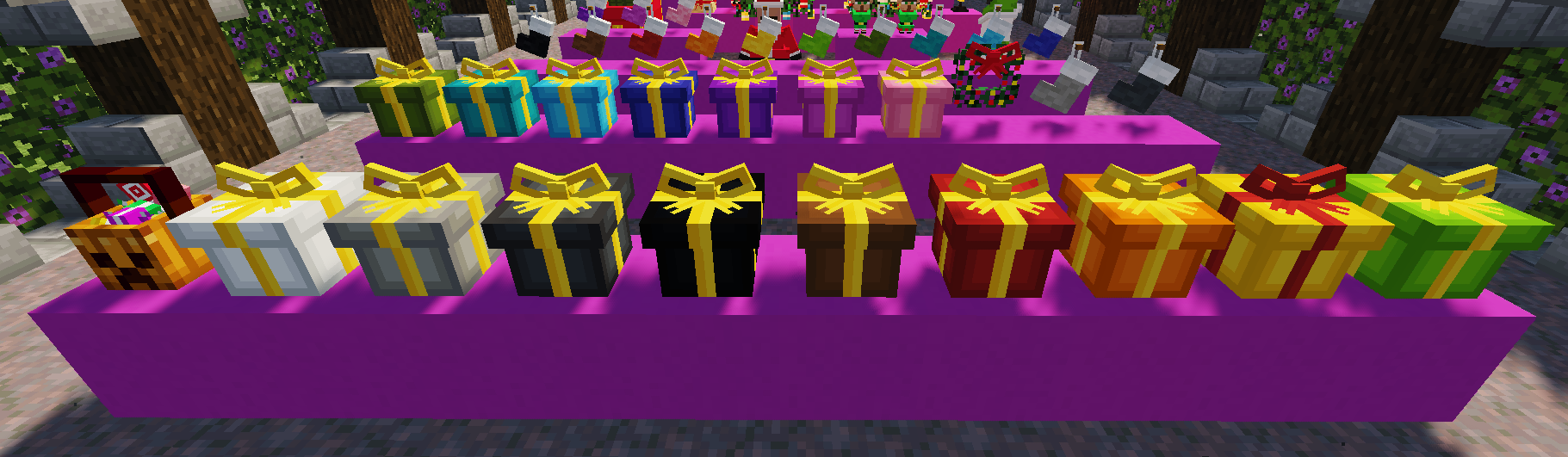 Все предметы в моде можно получить в режиме выживания. Чтобы начать создавать эти объекты, вы должны разместить пурпурный краситель и изумруд на верстаке, таким образом вы получите 9 HOLIDAYS GEMS , с которыми, комбинируя их с другими материалами, вы сможете получить декоративные предметы. ВСЕГО 150 РАЗЛИЧНЫХ ПРЕДМЕТОВ!