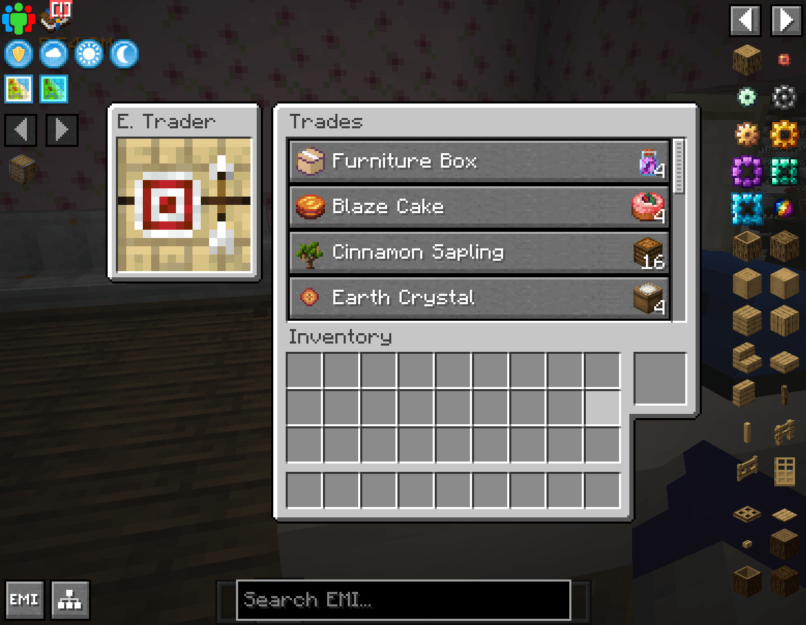 Экран торговли для каждого магазина представляет собой улучшение по сравнению с ванильным интерфейсом торговли, позволяя непосредственно брать предметы для обмена из инвентаря игрока вместо неудобного перемещения предметов в слоты. Стек предметов можно обменять с помощью Shift+клика по слоту вывода сделки.