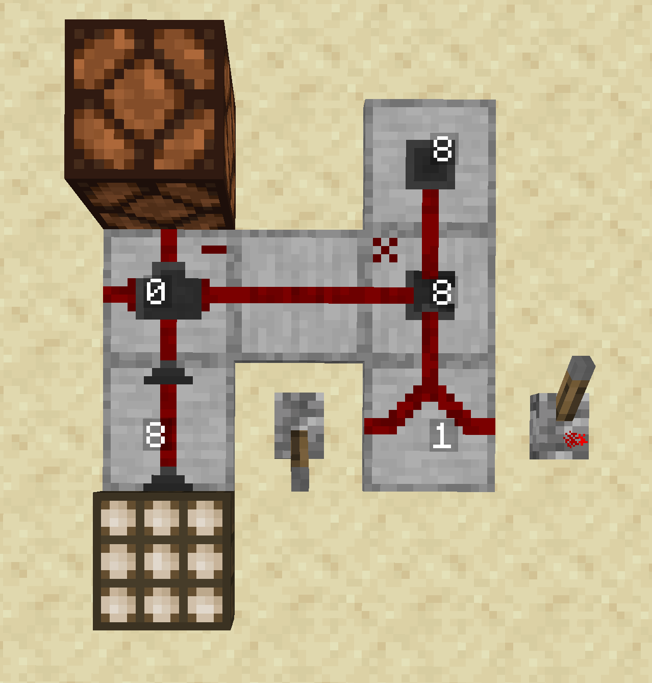 • Схемы редстоуна в одном блоке, способные выполнять логические или математические операции