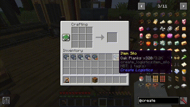 Представляю мой аддон Create Logistics. В настоящее время он добавляет единственный предмет: Item Silo. Это ящик, который выглядит как инструментальный, но может хранить только один тип предмета в количестве свыше 3,200. Как и bundle, его можно использовать непосредственно из инвентаря для увеличения вместимости и удобства. Он также может быть полезен при крафте, так как позволяет хранить значительно больше, чем стандартный bundle, в одном слоте.