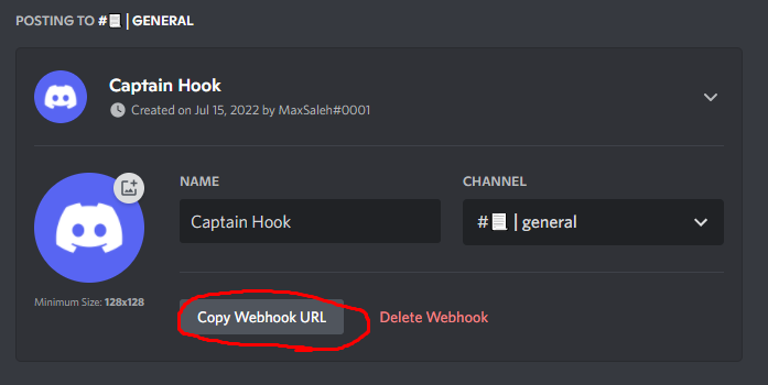 - Шаг 4: Измените имя вебхука и, если нужно, измените канал.