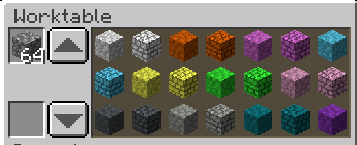 Caveopolis добавляет широкое разнообразие цветных блоков для улучшения ваших любимых материалов Minecraft, от камня и земли до цветов и бамбука. С новым предметом Worktable вы можете легко создавать различные варианты этих блоков, преобразуя ванильные предметы в новые версии. Кроме того, Цветные аэрозольные баллончики позволяют вам изменять блоки непосредственно в мире.
