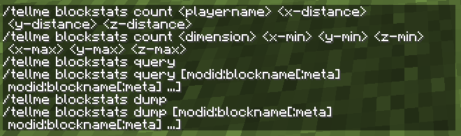 - /tellme blockstats query — Выводит статистику блоков из предыдущей команды count в консоль сервера.