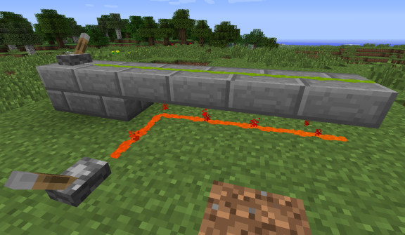 Паста может взаимодействовать с редстоун-пылью при явном подключении к ней. В противном случае они могут проходить рядом, не передавая редстоун-сигнал друг другу.