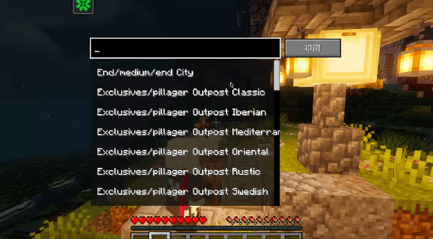 Затем вы можете спросить его о структурах или биомах поблизости.