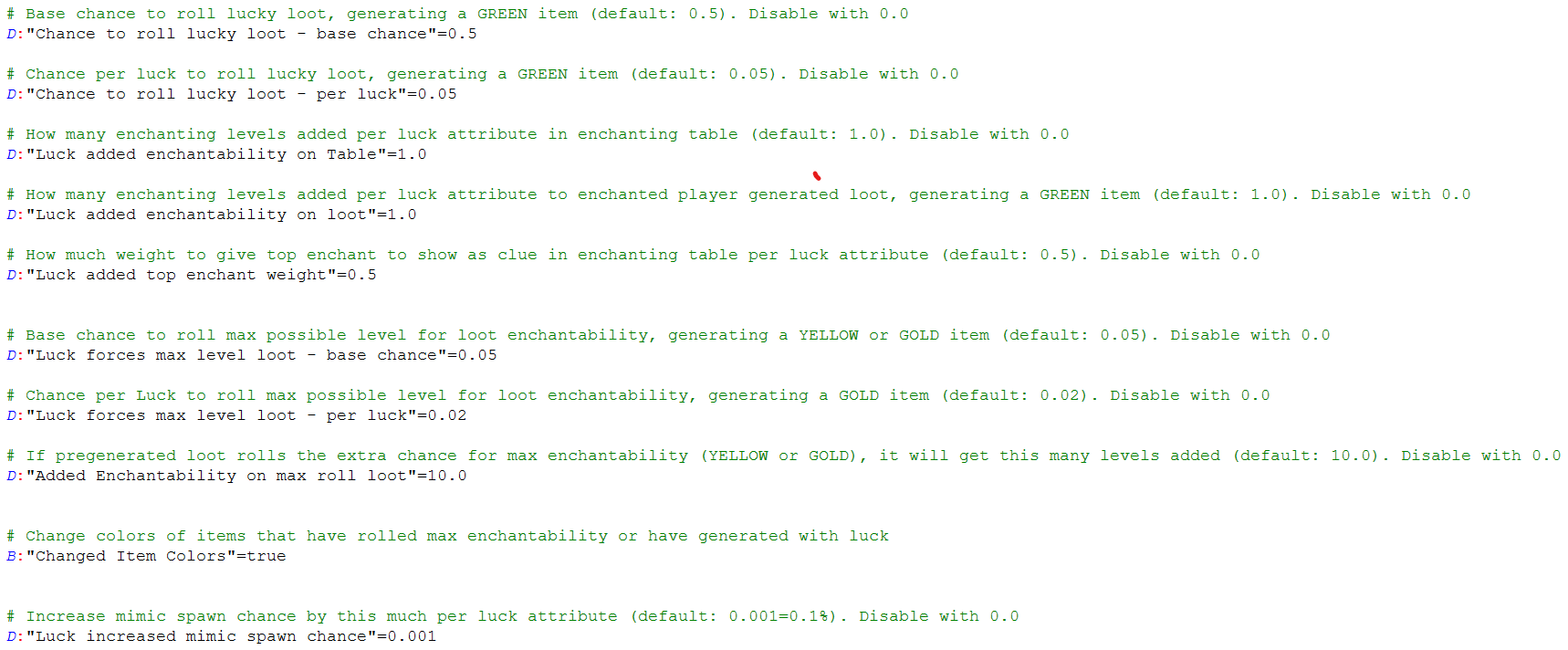 Мод также добавляет редкий лут (желтый или золотой, если также используется удача), который всегда будет выдавать максимально возможную зачаровываемость для этой таблицы лута.