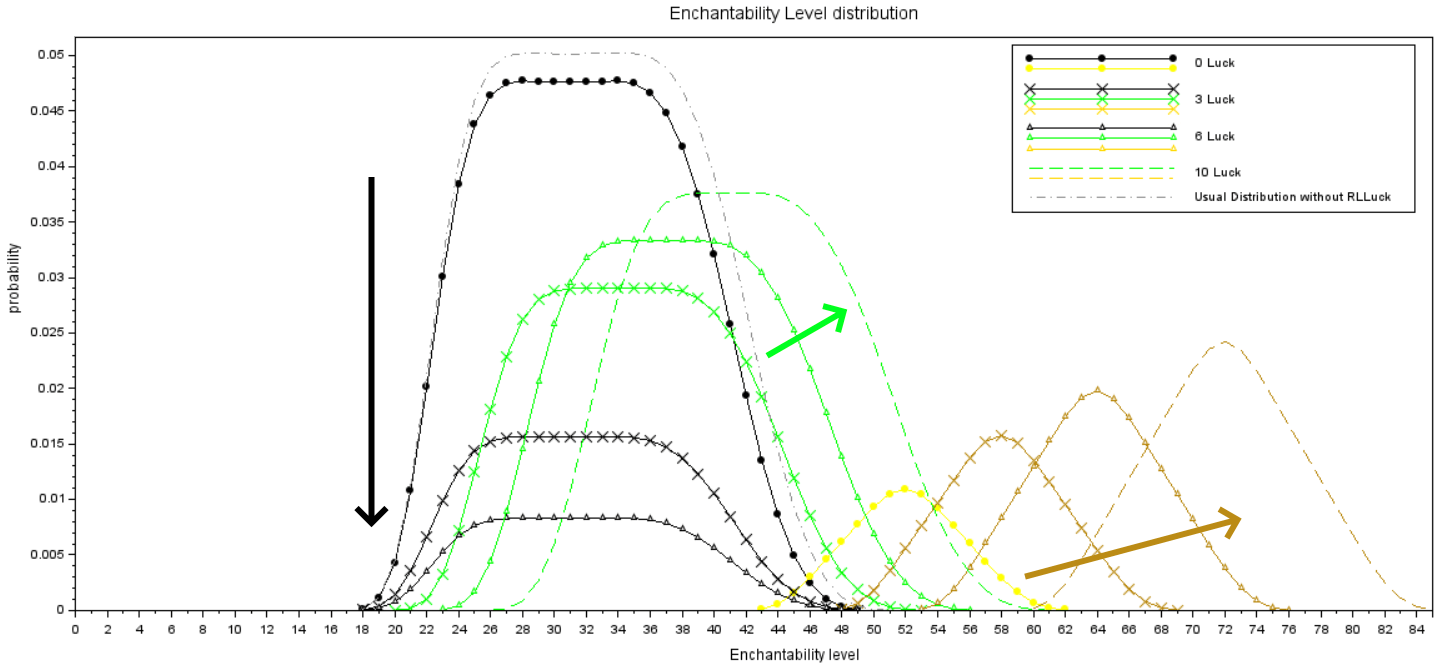 - Увеличивать зачаровываемость (не предгенерированной) лута (зеленые предметы)