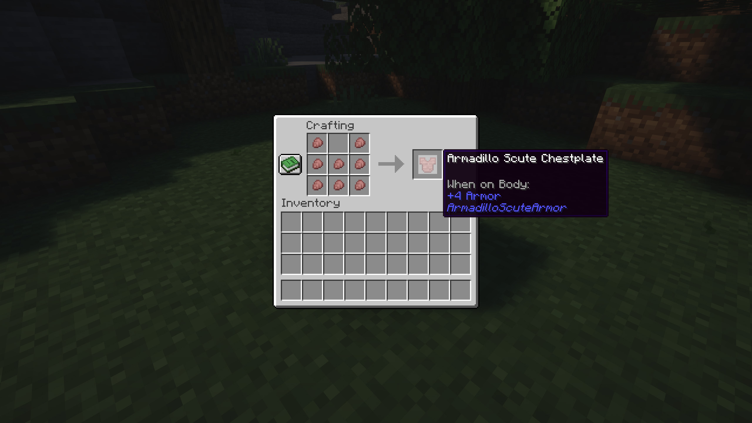 Эта броня будет немного прочнее кожаной, но немного хуже железной. Разумеется, её можно будет скрафтить точно так же, как и другие виды брони, но с использованием щитков броненосца.