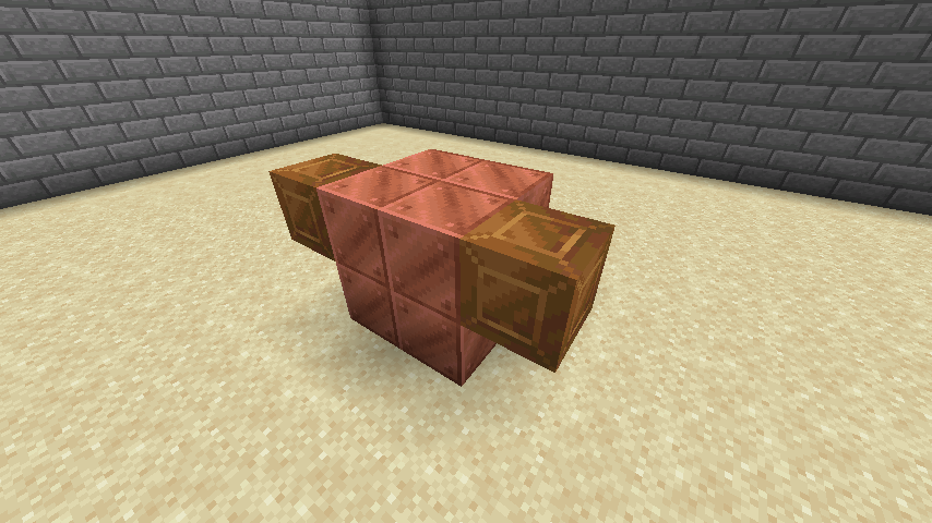 Чтобы призвать Бронзового Быка, необходимо построить площадку 2x2 из медных блоков с 2 бронзовыми блоками по бокам