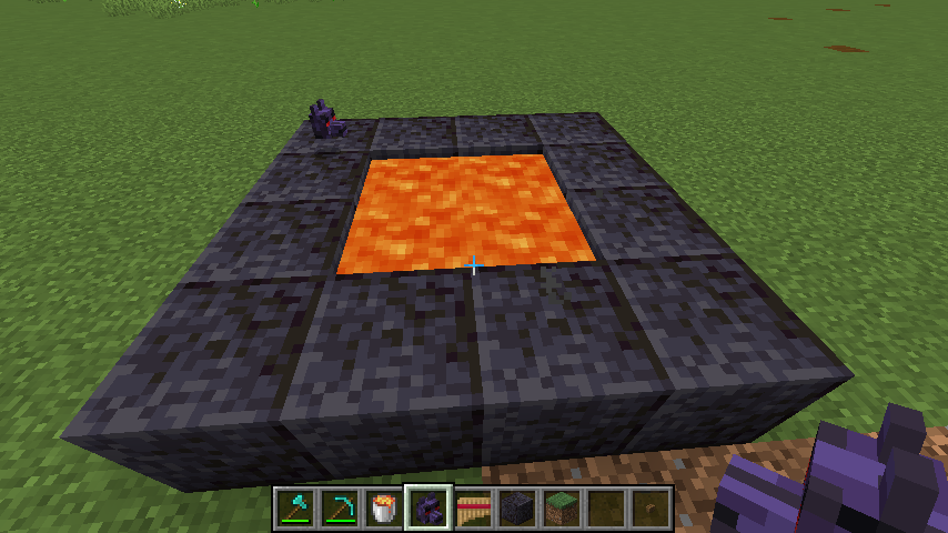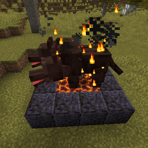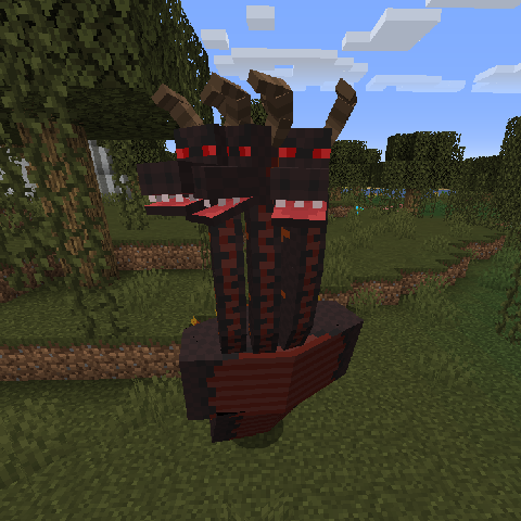 Чтобы призвать этого исчадия, необходимо построить полую рамку 4x4 из блоков чернитa, с площадкой 2x2 из лавы посередине. Затем принесите в жертву голову Орфа, бросив её в лаву. Лава превратится в магму, и появится Цербер.