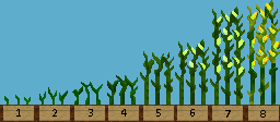 Стебли кукурузы высотой в 3 блока (сопоставимая высота с реальной жизнью), и стадии роста представлены ниже: