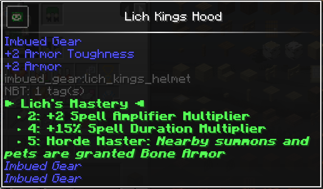 Вот пример Набора Снаряжения из Imbued Gear. Все бонусы активны на этой картинке: Пример Всплывающей Подсказки Набора Снаряжения