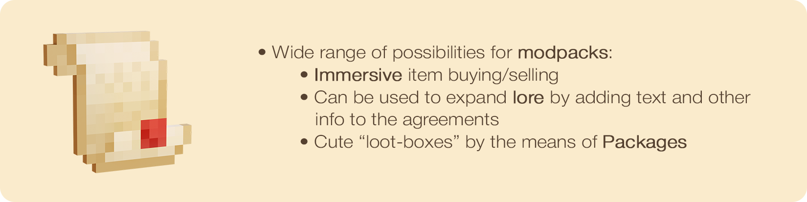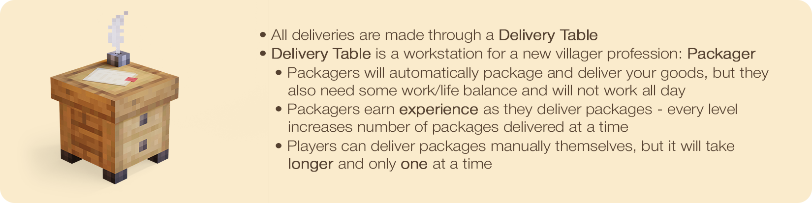 Мод в первую очередь предназначен для модпаков. Чтобы создавать Delivery Agreements, вам нужно будет редактировать NBT предмета.