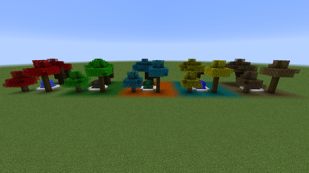 В этом примере измерение 12 - это простой случай, когда затронуты только эти 4 биома. Однако в измерении 13 регулярное выражение заставляет цвет листвы изменяться на оттенок красного во ВСЕХ ванильных биомах, но затем последующие 4 записи переопределяют этот цвет для этих 4 биомов.