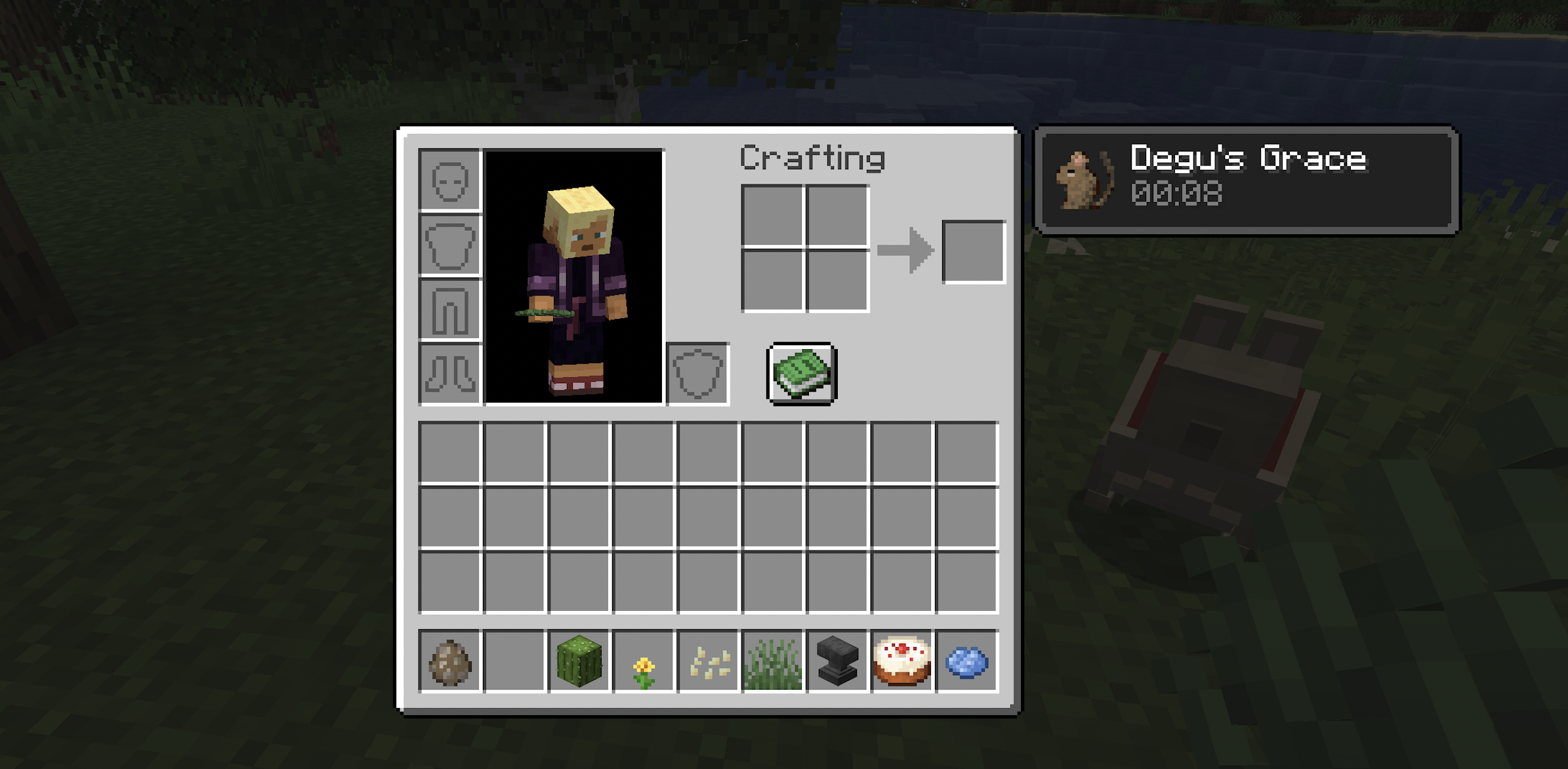 - Этот эффект дает игрокам способность поедать траву, высокую траву и сухой куст, используя или ломая их, как это делают дегу.