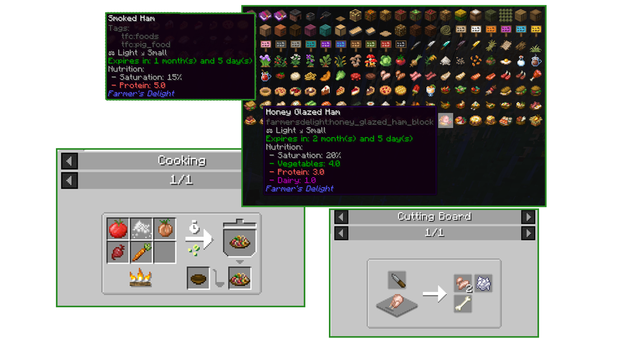 • использование ресурсов из мира TFC для рецептов FD (вы используете овощи, фрукты, мясо из TFC в своих рецептах в кастрюле для готовки)