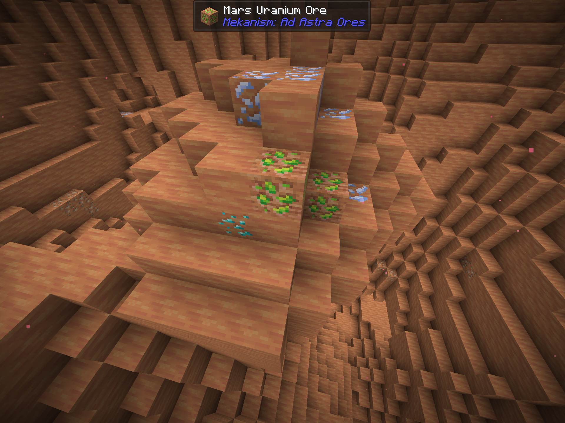 - Позволяет рудам Mekanism (олово, осмий, свинец, уран, флюорит) появляться на всех пяти планетах Ad Astra.