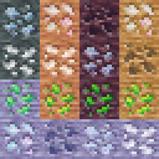 - Отдельные варианты руд могут быть переопределены с помощью датапаков. Подробности см. в папке