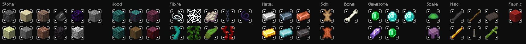 Для металлов добавлена альтернатива незериту — Hardened Prismarine, который можно получить только убив Старшего Стража. Он выпадает в количестве от 1 до 2 слитков за каждого. Soulanite — это сплав между закалённым призмарином и незеритом, а также Withered Soul Stone, который выпадает в 2 из 3 случаев при убийстве Визера. Его можно использовать как обычную металлическую часть инструмента или для специальных улучшений некоторого снаряжения, значительно усиливающих его.