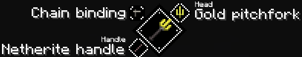 Вилы — это не совсем оружие, а скорее инструмент, который работает как мотыга, но его можно метать или attached к длинной рукоятке для более удобного сбора урожая с высоких деревьев, особенно в Незере. Его можно изготовить из большинства обычных материалов.