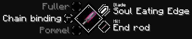 Soul Eating Edge — это улучшение Ragnorok's Edge, которое можно получить, использовав слиток soulanite на нём на верстаке. Текстура анимирована в игре и переходит от резкого клинка к приобретению светящейся ауры.