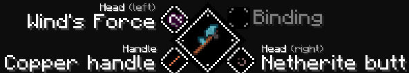 Wind's Force — это улучшенный Amethyst Gale, который добавляет мощную атаку по площади и ещё лучше пробивает броню. Его можно получить, улучшив AG на верстаке с помощью слитка soulanite. Текстура в игре анимирована и имеет яркий блеск.