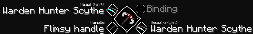 Warden Hunter Scythe — это улучшение Warden's Bane. Оно предлагает огромные баффы при убийстве врагов и игнорирует даже самые сильные защиты. Его можно получить, улучшив WB на верстаке с помощью слитка soulanite. В игре текстура анимирована и переходит от лёгкой голубой дымки к мощной светящейся косе.