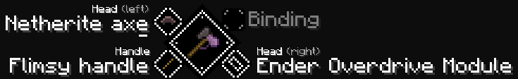 Ender Overdrive Module — это восстановленный фрагмент эндер-технологии, отремонтированный с помощью деталей из Forged Ruins. Он действует как усилитель для любого закалённого в бою (warforged) оружия, позволяя перенаправить его и нанести огромный урон любому врагу, который недавно вас ударил. Также его можно использовать для создания всего, что требует молота. Его можно найти в сундуках Энд-города.