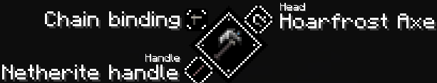 Hoarfrost — это топор, который можно установить на одноголовый инструмент. Он позволяет метать его для добычи дерева или, альтернативно, метать его для 'сбора' врагов с базовым значением пробивания, равным 3, которое можно улучшить.