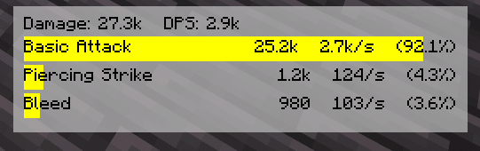 Клиентский оверлей DPS для Mine and Slash. Он анализирует журнал боя в реальном времени и отображает компактный, перемещаемый HUD, показывающий общий урон, DPS и ваши основные способности с цветными полосами, соответствующими элементу урона.