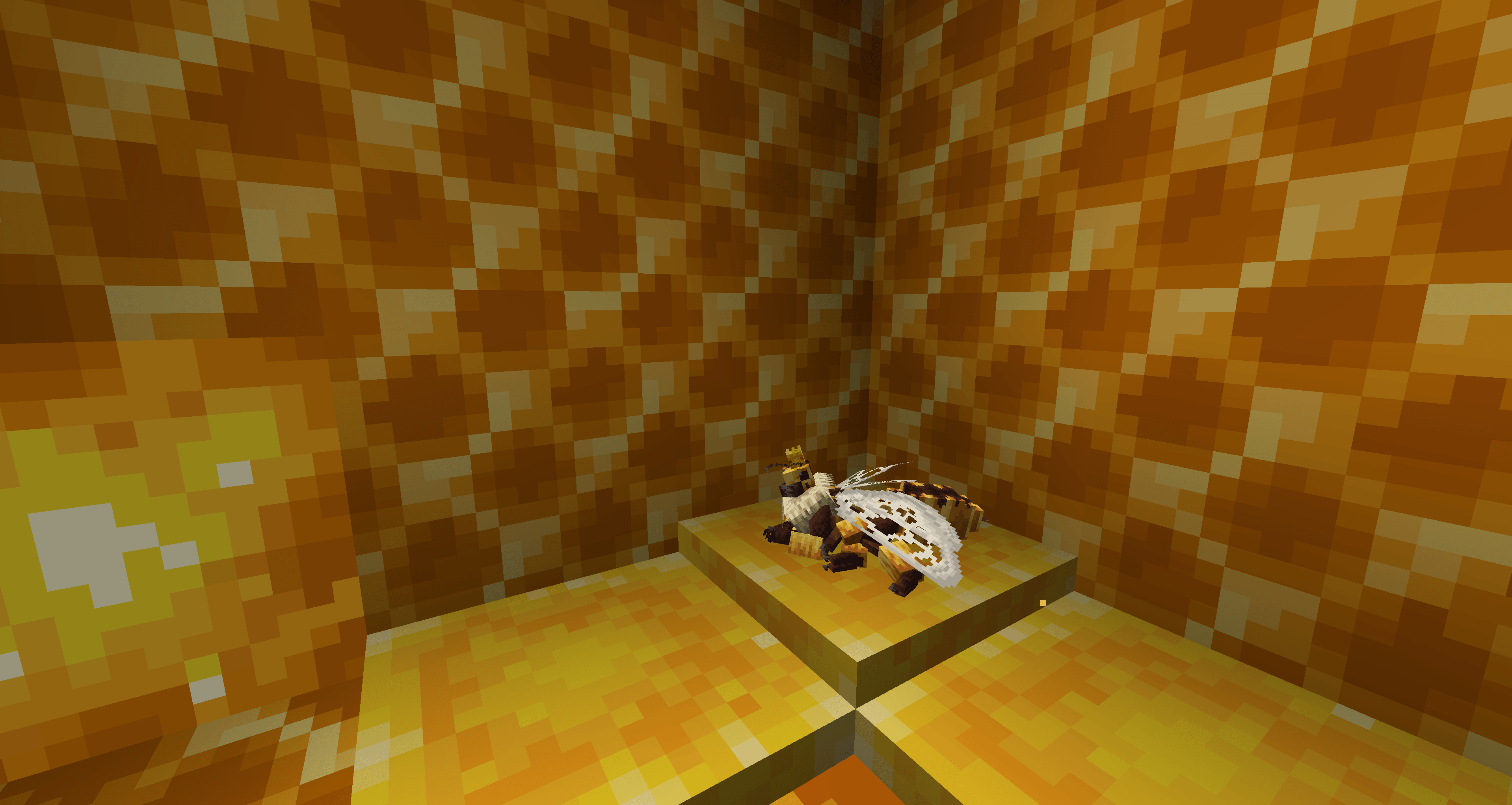 - Комплект карамельной брони — защищает Пчелиную Королеву от воды, но быстро теряет прочность. Приручённые пчёлы также могут носить эту броню и получать множество бонусов (лучше, чем волк!)