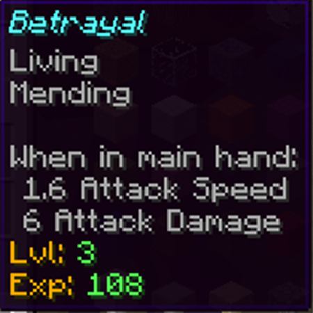 - В стиле Mending: "Живые" предметы будут потреблять часть вашего опыта для повышения уровня, аналогично работе Mending.