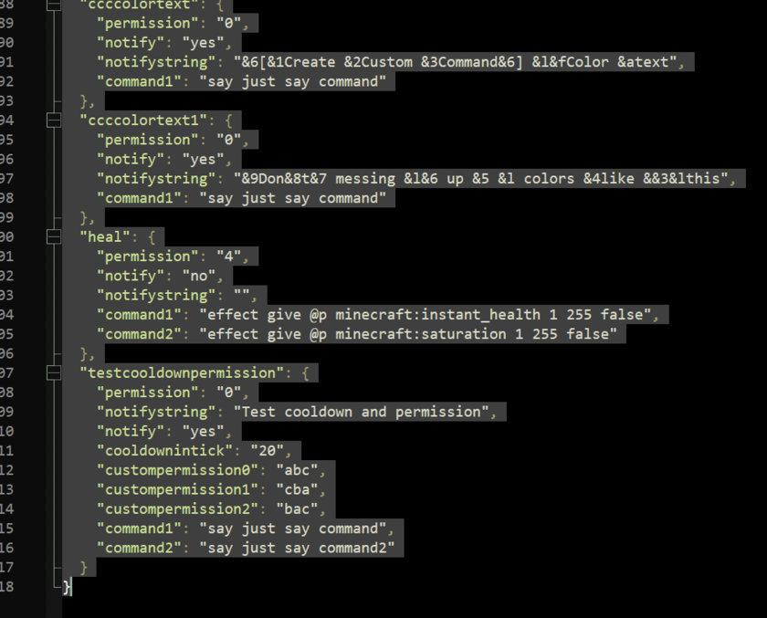 - Пользовательская обратная связь для команд поддерживает цвет. Используйте коды цветов Minecraft "&".
