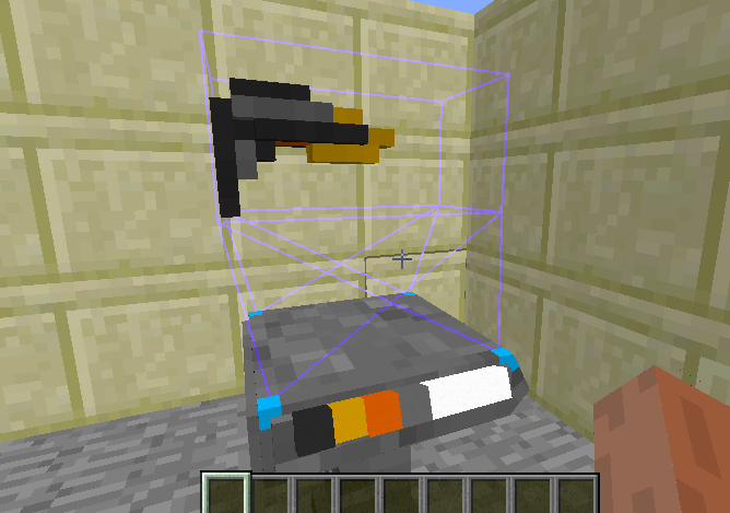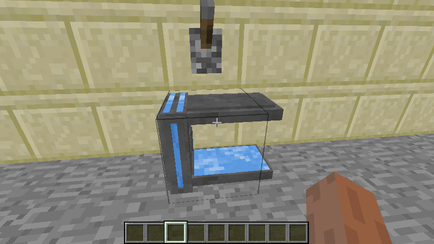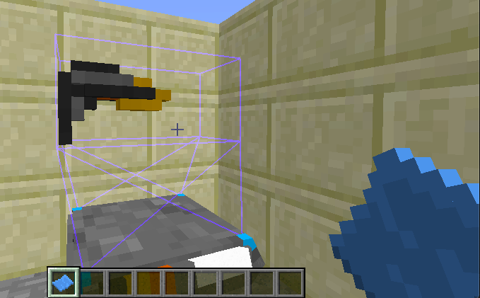 После этого разместите его. Вы увидите голограмму над ним, а также несколько белых кнопок, расположенных в ряд. Вы можете щелкнуть правой кнопкой мыши по голограмме, чтобы разместить блоки, и левой кнопкой мыши, чтобы стереть их.