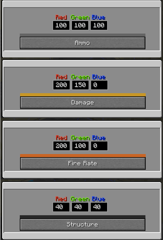 Вы можете редактировать кнопку, щелкнув по ней правой кнопкой мыши. Это позволит изменить цвет и функциональность материалов, которые вы используете для создания оружия. Вы можете добиться хорошего баланса каждой функции или склониться к определенному элементу, чтобы специализировать оружие. Имейте в виду, что как минимум 1/4 часть оружия должна быть сделана из структурного материала.