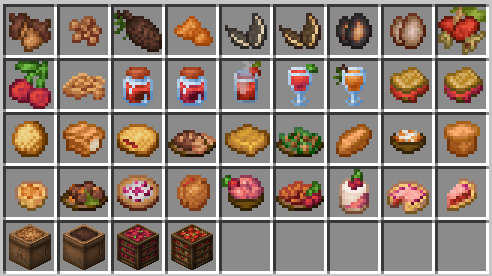 Рекомендуется играть с модами JEI и Appleskin для просмотра рецептов и характеристик еды в игре.