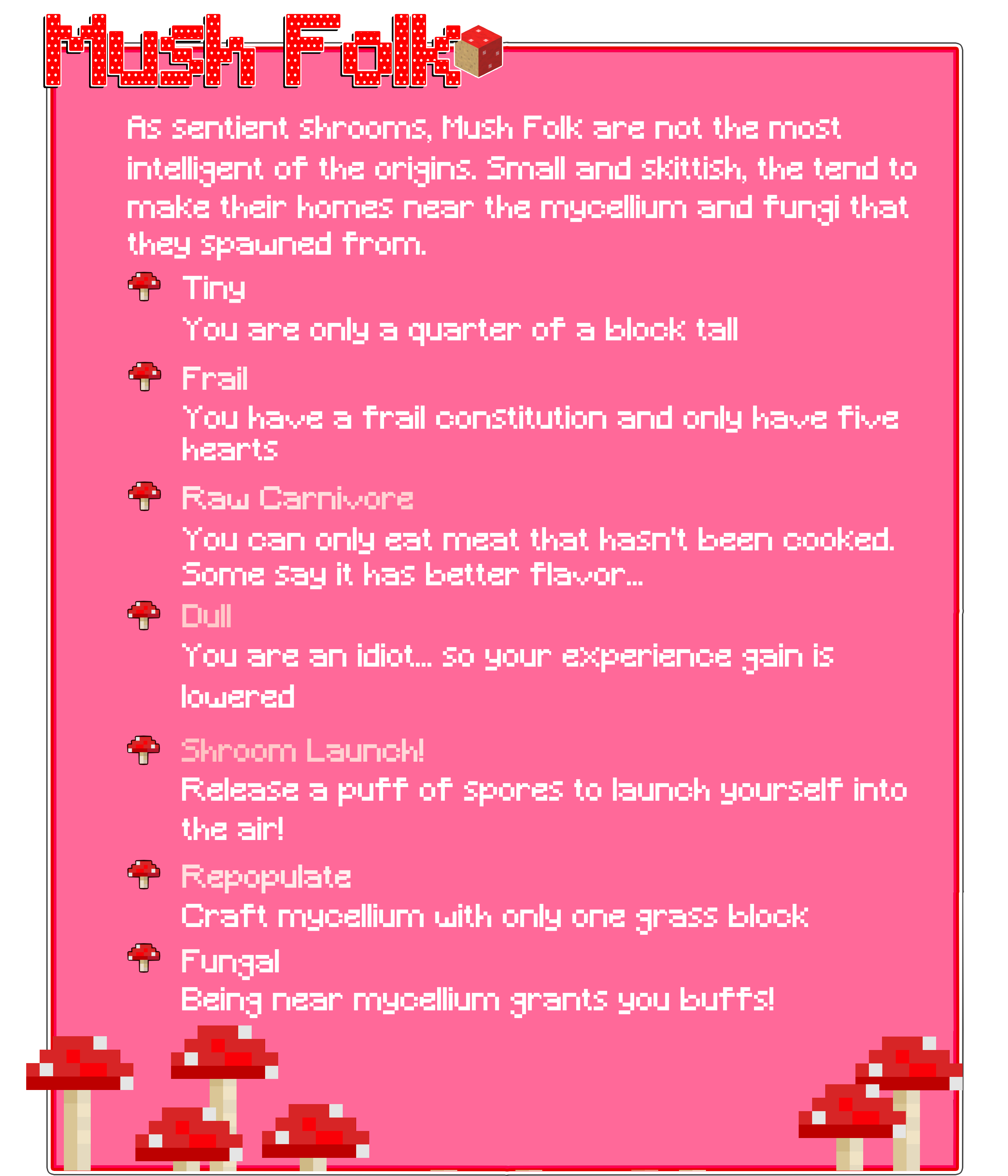 Bucolic Origins — это мод (точнее, дата-пак), предназначенный для использования в модпаке Bucolic Craft! Однако его можно использовать и в других сборках! Существуют отдельные файлы для Fabric и Forge, поскольку у них несколько разные требования! На Discord-сервере есть информация об этом моде! Мы также можем оказать поддержку разработчикам модпаков, создавая версии, отключающие определённые происхождения и другие функции! Его также можно настроить так, чтобы он не заменял стандартные происхождения или любые другие добавленные вами происхождения!