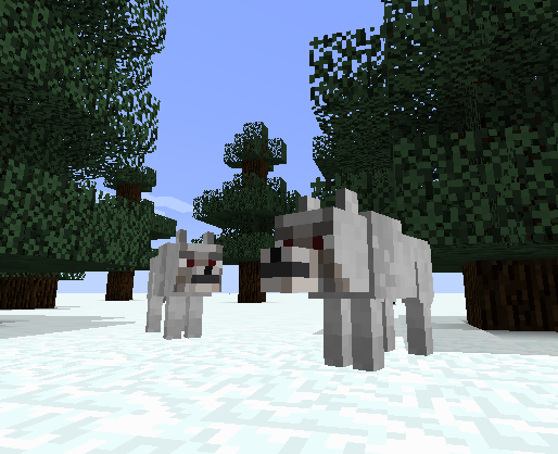 Лютые Волки встречаются небольшими стаями в заснеженных лесах. Они обычно игнорируют посетителей своих владений, но не подходите слишком близко к этим мощным зверям.